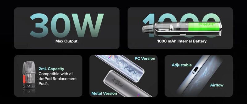 DotPod Lite 採用氣流感應擊發,無需按鍵。搭配2mL煙彈,側填式填充,讓您在任何環境中也能一氣呵成,讓您的使用體驗更加無憂。